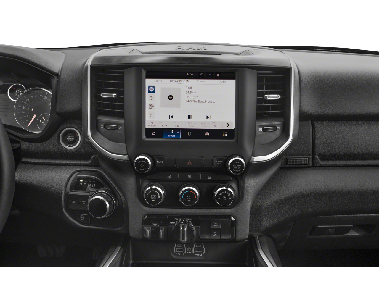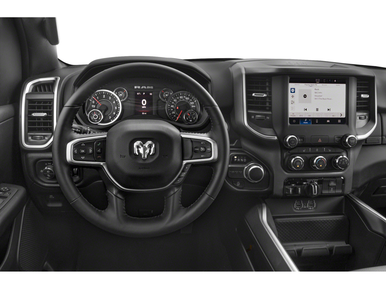 2nd Row In Floor Storage Bins, 4G LTE Wi-Fi Hot Spot, 8.4 Touchscreen Display, Apple CarPlay, Auto-Dimming Exterior Driver Mirror, Auto-Dimming Rear-View Mirror, Big Horn Badge, Big Horn Level 1 Equipment Group, Black Exterior Mirrors, Black Premium Power Mirrors, Black Trailer Tow Power Mirrors, Bluetooth® Handsfree Phone & Audio, Class IV Receiver Hitch, Connectivity - US/Canada, Convex Wide-Angle Exterior Mirror Insert, Electric Shift-On-Demand Transfer Case, Exterior Mirrors Courtesy Lamps, Exterior Mirrors w/Heating Element, Exterior Mirrors w/Supplemental Signals, For Details, Visit DriveUconnect.com, For More Info, Call 800-643-2112, Front Fog Lamps, Glove Box Lamp, Google Android Auto, GPS Antenna Input, Heated Front Seats, Heated Steering Wheel, Integrated Center Stack Radio, Passenger Sun Visor w/Illuminated Mirror, Power-Folding Mirrors, Quick Order Package 23Z Big Horn, Radio: Uconnect 5 W w/8.4 Display, Rear Dome w/On/Off Switch Lamp, Rear Power Sliding Window, Rear Window Defroster, SiriusXM Satellite Radio, Trailer Brake Control, Trailer Light Check, Trailer Reverse Steering Control, Trailer Tire Pressure Monitoring System, Trailer Tow Group, Trailer Tow Mirrors, USB Host Flip, Wheels: 20 x 9 Aluminum Chrome Clad (WRK).