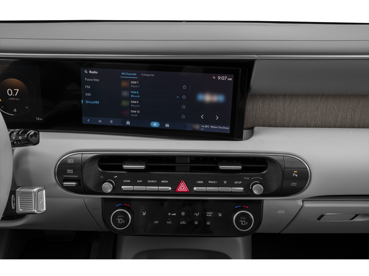 - Radio: Infotainment Navigation System -inc: 12.3" color touchscreen, wireless Apple CarPlay and Android Auto, HD Radio, Sirius XM, Passenger Talk 2.0 in-car intercom system, dynamic voice recognition, rear seat quiet mode, Bluetooth® hands-free w/wireless audio streaming, multiple device connection (up to 2 devices), USB connectivity, Bluelink + connected car services, Wi-Fi hotspot, steering wheel audio controls and Over-the-Air (OTA) software updates